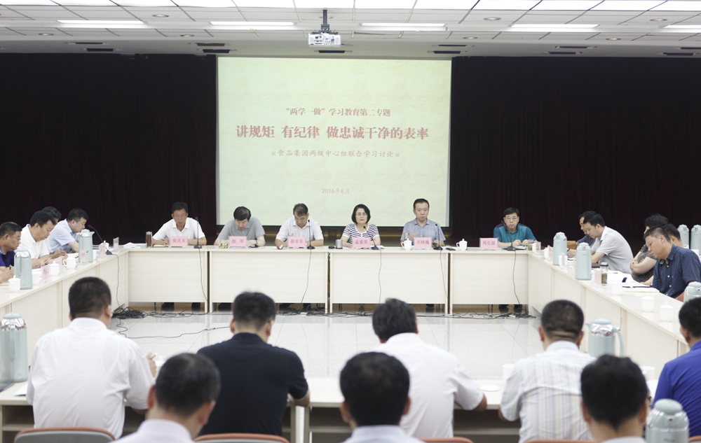 集團黨委書記、董事長孟愛英從增強黨紀黨規(guī)意識的重要性、黨員領導干部如何發(fā)揮模范作用做講規(guī)矩有紀律的表率、各級黨組織和紀委如何進一步強化監(jiān)督執(zhí)紀問責等三方面,結合個人學習收獲和食品集團實際首先帶頭談體會。集團黨委常委和直屬單位5位代表也分別圍繞“講規(guī)矩 有紀律做忠誠干凈的表率”主題,結合習近平總書記“七一”重要講話精神、違紀違法反面典型與個人實際相聯系進行了交流發(fā)言。最后,孟愛英對集團如何開展好“兩學一做”第三專題學習討論提出要求。