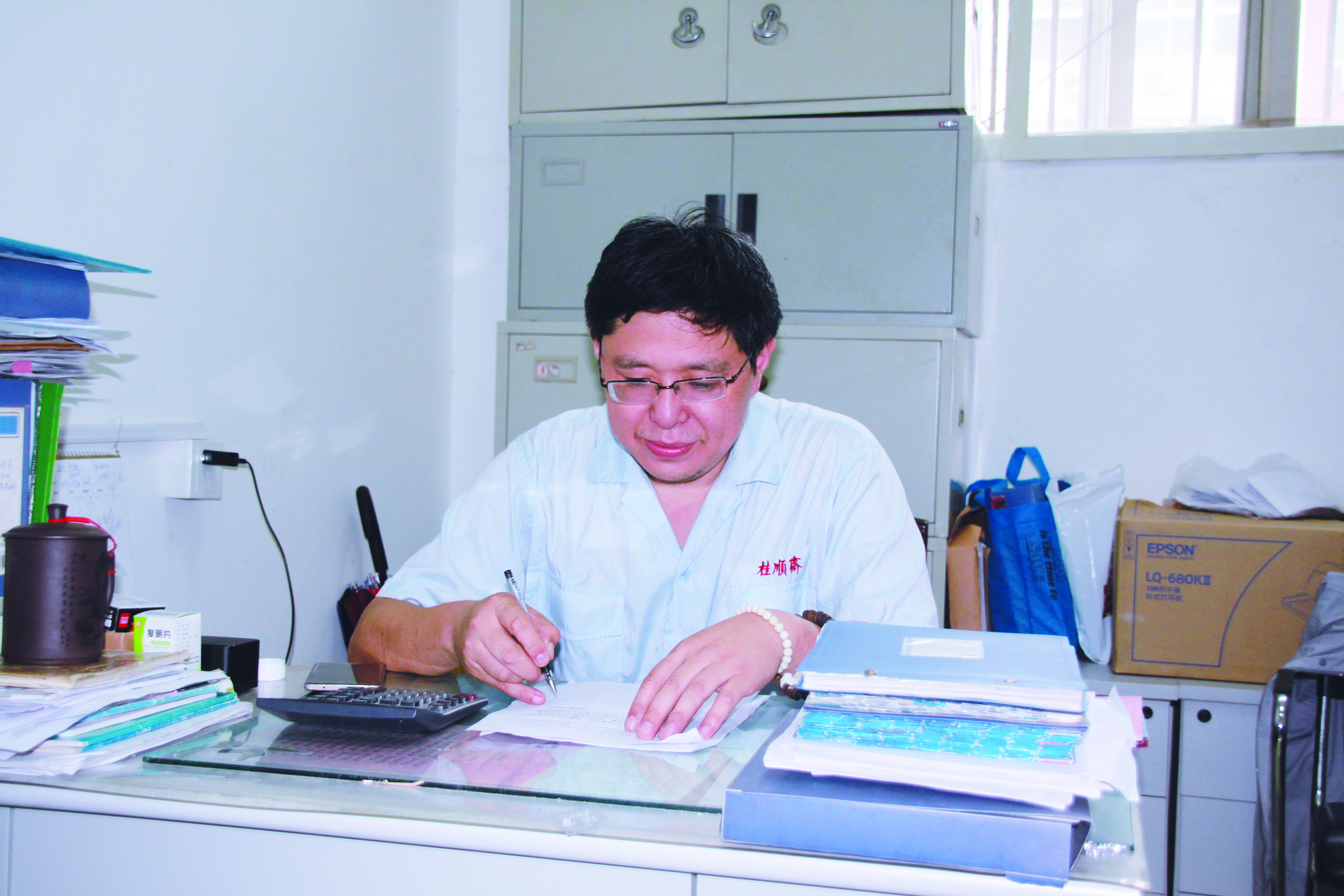 每次生產原料進廠,喬軍更是和其他干部們一起主動卸車,從不雇傭其他裝卸人員,為企業(yè)節(jié)約了不少成本。2011年5月,喬軍在登上半掛汽車卸大豆油時不幸受傷,導致手腕骨折,造成了十級傷殘,胳膊打上了石膏。但是,堅強的他未因此休息一天,一直堅持工作。他考慮的是,企業(yè)里的工作本來就繁忙,為了企業(yè)能降低成本,為了企業(yè)能發(fā)展得更好,自己身兼多職,能多干的就多干一些。桂順齋這樣的企業(yè),有節(jié)假日不休息的傳統(tǒng),加之財務工作特點,他風雨無阻,全年無休。這就是喬軍,時時刻刻以一名共產黨員的標準嚴格要求自己,在職工中切實起著模范帶頭作用,踐行著自己的入黨誓言。