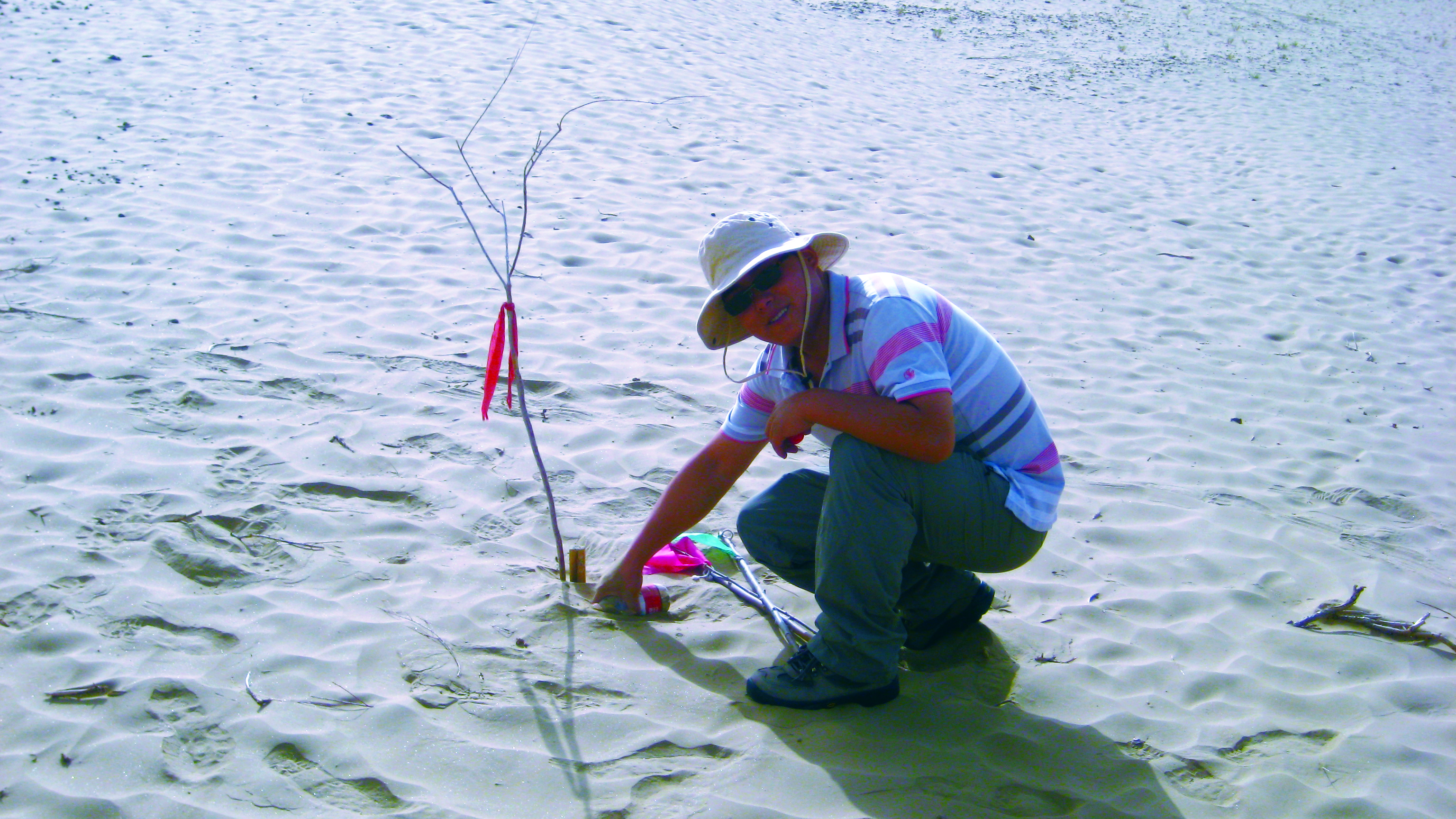 2012年春天,天津市委、市政府決定由原天津農(nóng)墾集團(tuán)前往新疆策勒縣開展援疆治沙項目。鄧寶不顧家人、朋友的反對,主動請纓,毅然加入援疆工作小組。他安頓好了年過半百的父母和尚在年幼的女兒、告別了妻子,帶著天津農(nóng)墾人的重托,帶著誓讓沙漠變綠洲的夢想與決心奔赴新疆,奔赴地處塔克拉瑪干大沙漠腹地的策勒,開始了與妻兒老小聚少離多、客居他鄉(xiāng)的艱苦歲月。