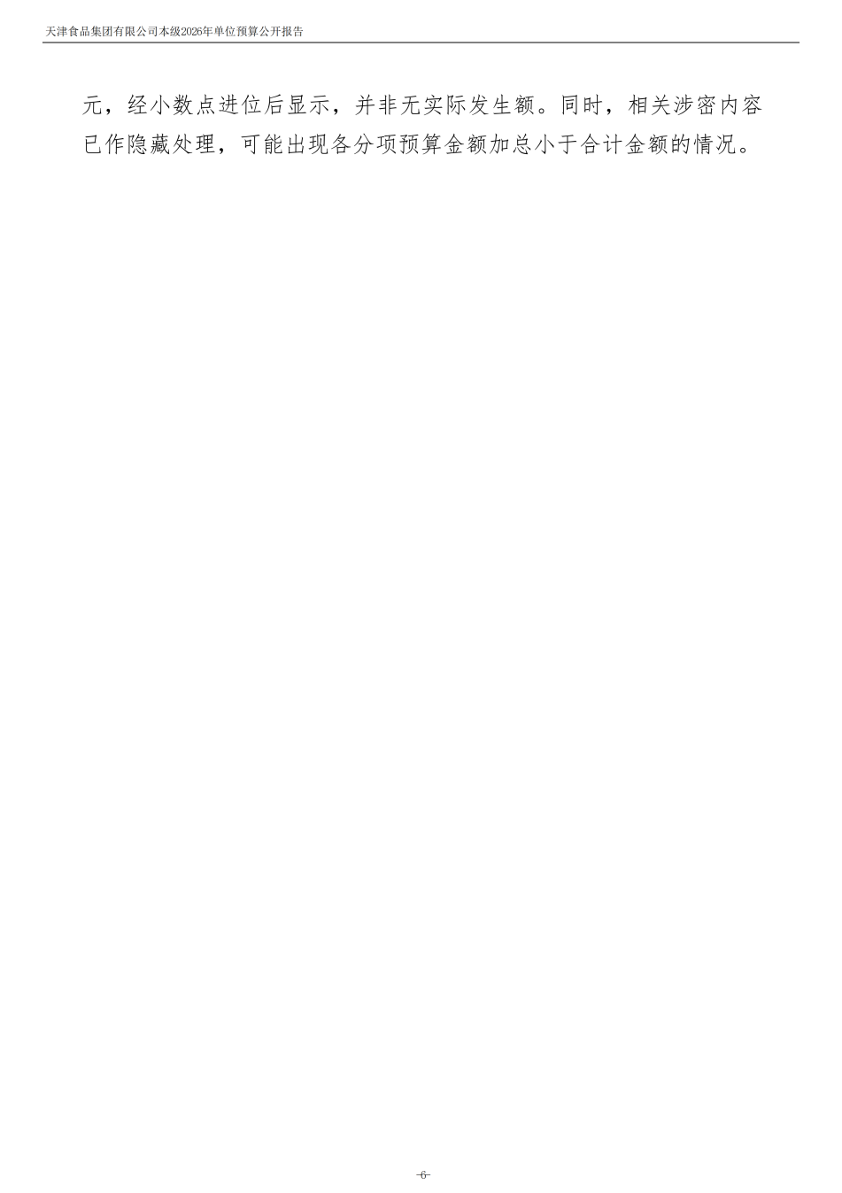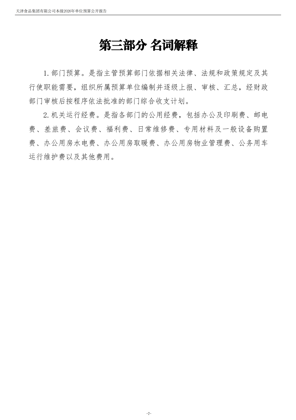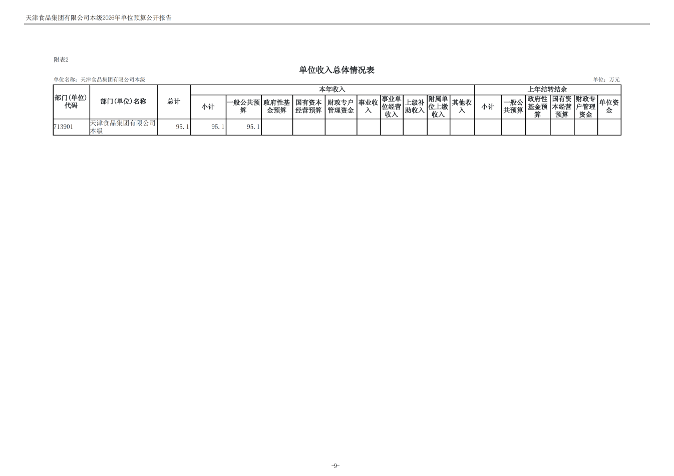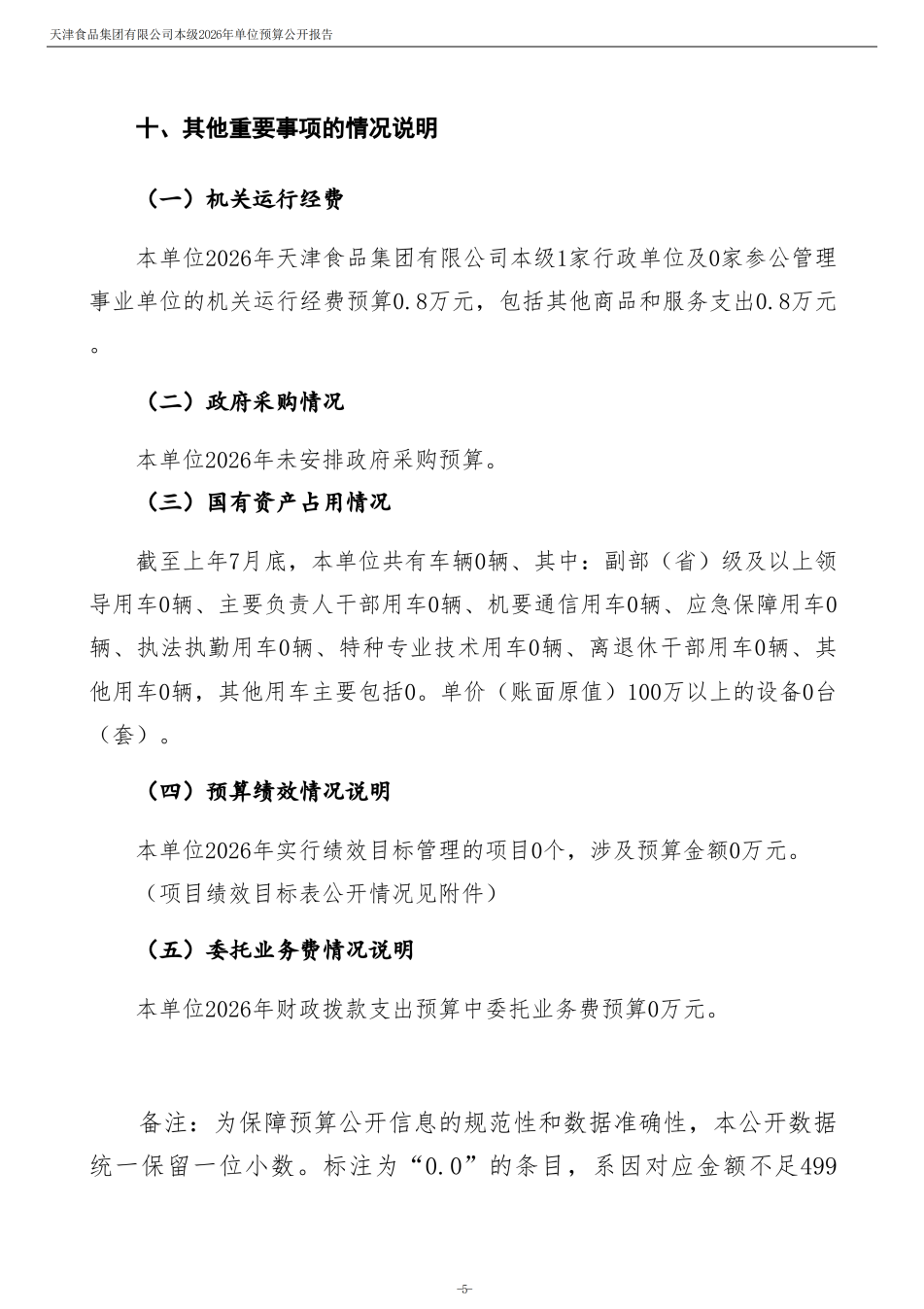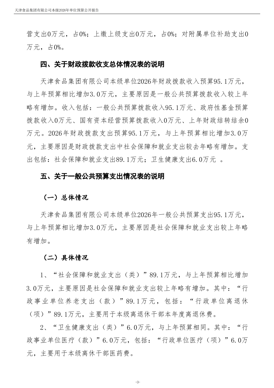 天津食品集團(tuán)有限公司本級(jí)2026年度單位預(yù)算