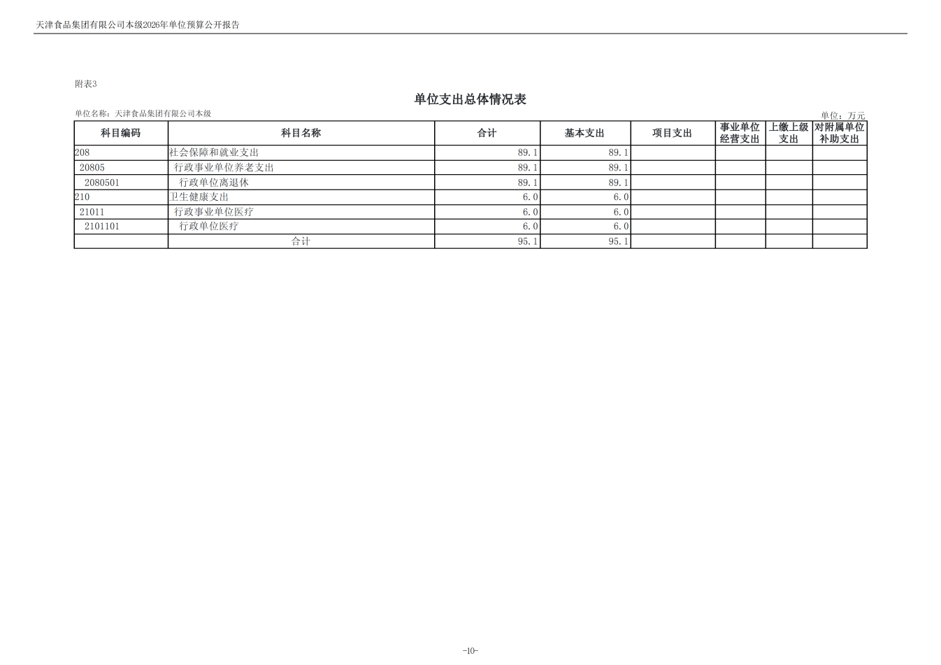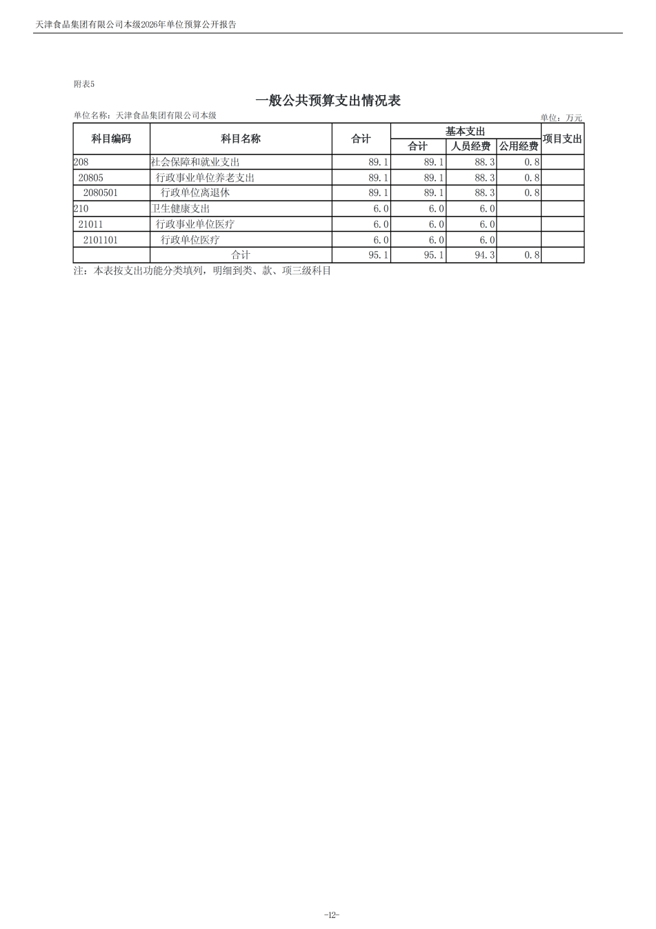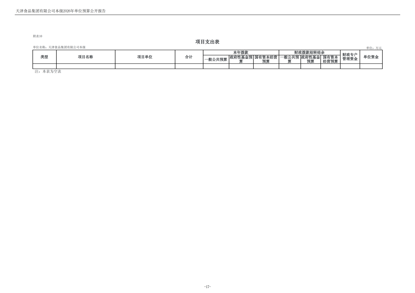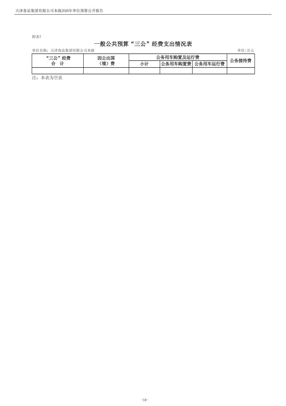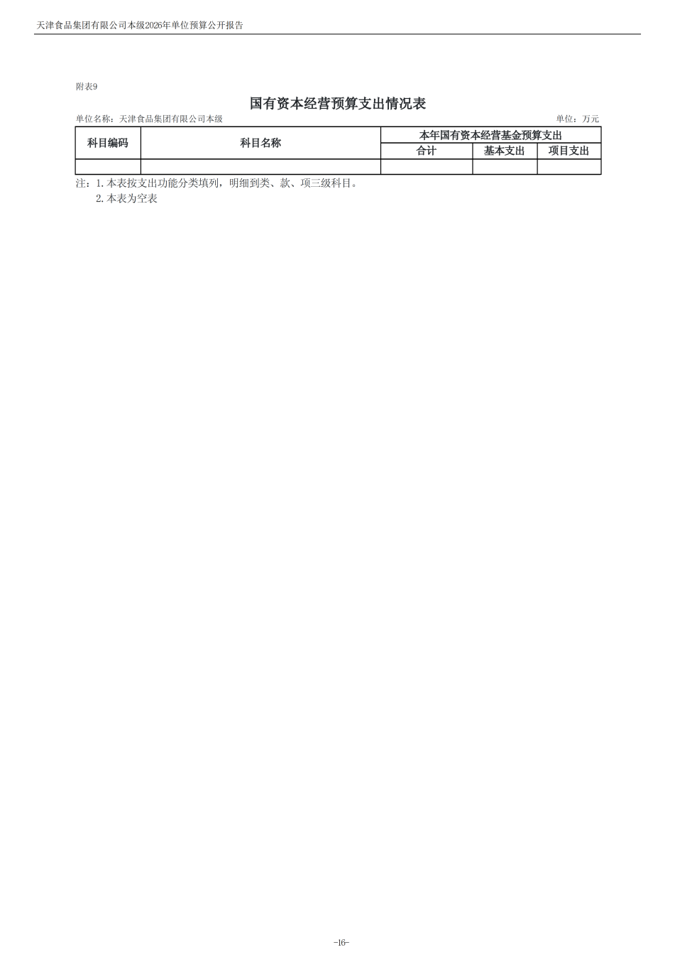 天津食品集團(tuán)有限公司本級(jí)2026年度單位預(yù)算